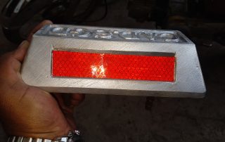 Road stud with rod is made of aluminum in 10 x 10 sizes. Its weight is 320 gram,. Aluminium road stud with rod has 25 tons compression resistance which is resistant to heavy vehicles. It is mounted on the ground with epoxy cement with the help of the rod. The rod size is 20 x 50 mm. There are reflexive reflectors on both side of the road stud. Each reflector has 43 pieces of glass beads. Aluminium road stud provide clear vision and road safety by reflecting the headlights of the vehicles.